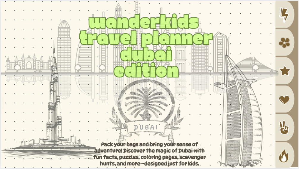 Explore the glittering desert city of Dubai with your little one using this WanderKids Dubai Travel Planner!