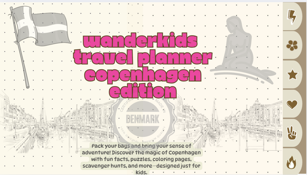 The WanderKids Copenhagen Travel Planner is a printable activity book made for curious kids ages 5β11 who love to learn while they travel! From fairytale castles and colorful houses to Viking legends and bicycle-filled streets, this guide brings Denmarkβs capital to life in a fun, interactive way.