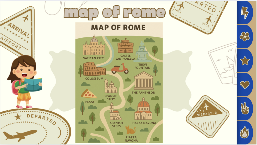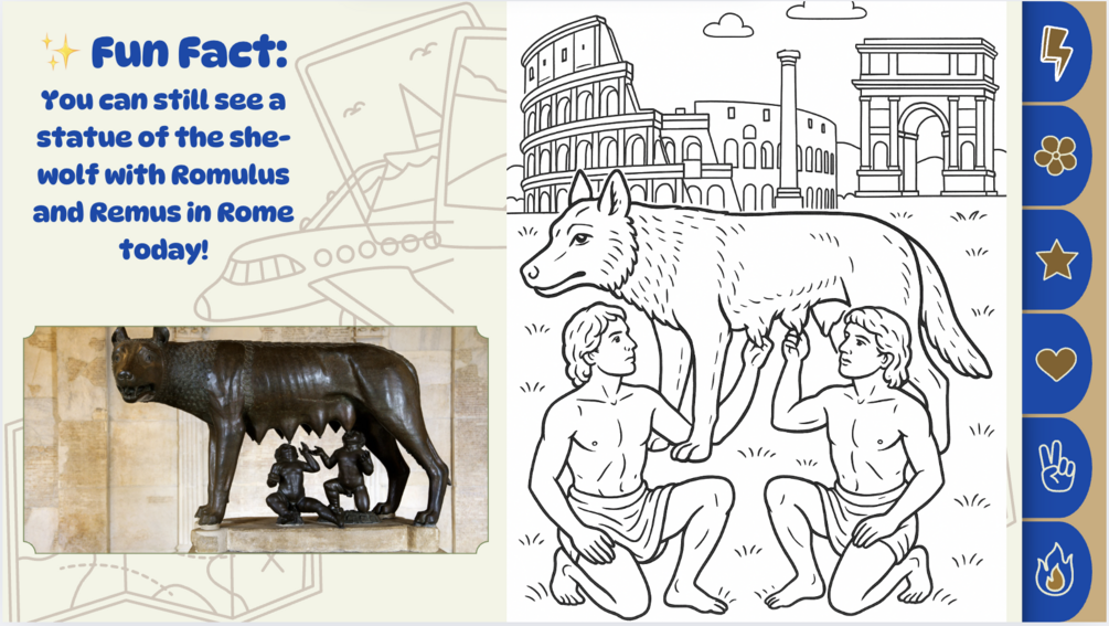 🇮🇹 From the Colosseum to the Trevi Fountain, kids will learn about Rome’s history, culture, food, and famous landmarks in a fun and accessible way.