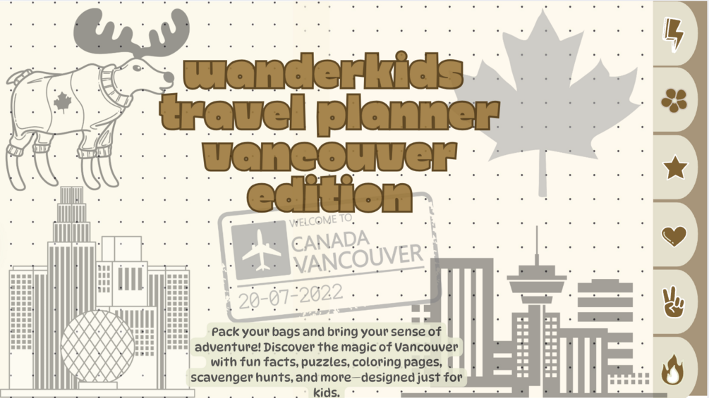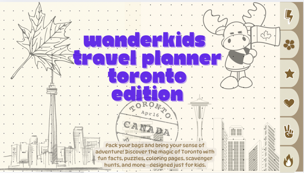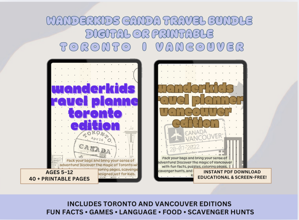 The WanderKids Canada Travel Planner Bundle includes two printable activity books designed for kids aged 5β11 β one for Toronto, and one for Vancouver. Whether you're visiting Canada's biggest city or exploring the scenic West Coast, these activity books make travel fun, educational, and screen-free for kids!