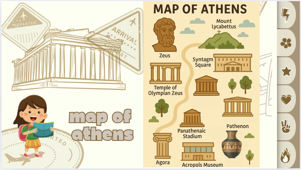 🧠 What’s Inside ✔️ “Did You Know?” Athens fun facts ✔️ Foods to Try in Greece 🍇 ✔️ Language & Local Phrases (Say It Like a Local!) ✔️ Cute Illustrated Map of Athens 🏛️ ✔️ Landmark Matching Quiz ✔️ Cultural Customs ✔️ Would You Rather: Athens Edition ✔️ Scavenger Hunt 🕵️ ✔️ Coloring Pages 🖍️ ✔️ Design Your Own Greek Picnic! ✔️ Parent Travel Tips Page