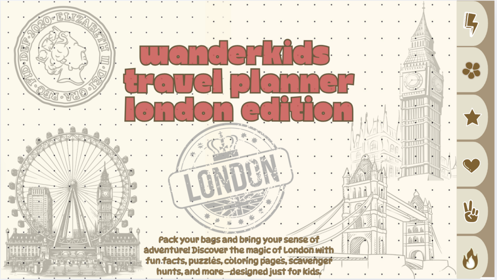 🌍 As a mum who has travelled the world with my children when they were small, having something educational and fun about a new destination made the trip a million times better. The kids were engaged and excited about visiting the places they were reading about and didn't even complain about all the walking. Be sure to follow me as Wanderkids is going global! Check out my Rome and Paris Edition, and next stop London and Singapore. If you have any countries you are keen on visiting let me know and I can create a Travel Activity Planner just for you!
